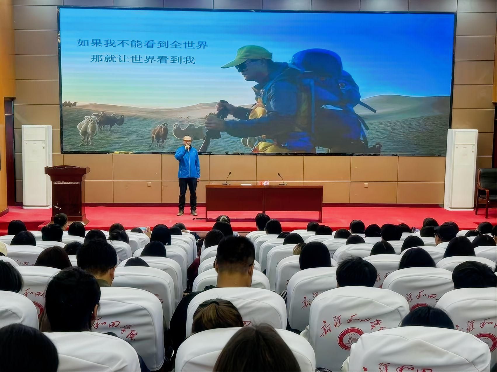 11月4日下午,新疆和田学院昆仑路校区涵德楼报告厅内气氛热烈、掌声如潮。中国首位盲人环球旅行家曹晟康先生走进校园,为师生带来了一场真挚动人的励志演讲。他以亲身经历讲述了自己如何面对命运的挑战,用顽强的意志与不屈的精神征服困难,书写了令人震撼的生命篇章。