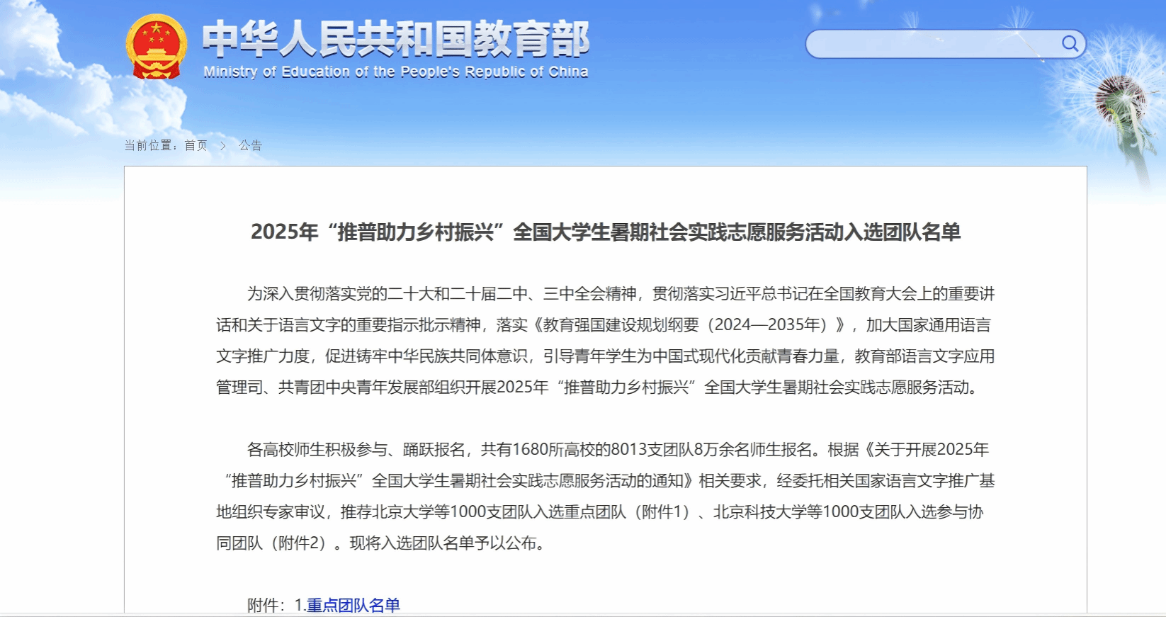 为深入贯彻党的二十大报告中“加大国家通用语言文字推广力度”的决策部署,紧密围绕铸牢中华民族共同体意识的工作主线,有力助推教育强国和文化强国建设,教育部语言文字应用管理司联合共青团中央青年发展部,共同组织开展了2025年“推普助力乡村振兴”全国大学生暑期社会实践志愿服务活动,经过严格选拔,我校临床医学院的“医语同心”推普志愿服务队以及校团委的昆仑语脉助普队脱颖而出,成功入选。